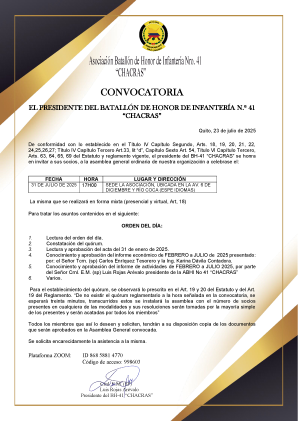 ASAMBLEA GENERAL ORDINARIACONVOCATORIA A LA ASAMBLEA GENERAL ORDINARIA QUE SE LLEVARÁ A CABO EL 31 DE JULIO DE 2025 |